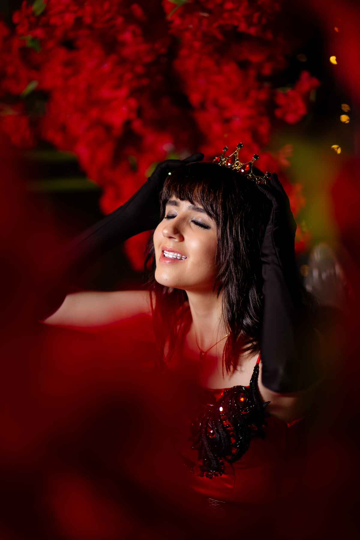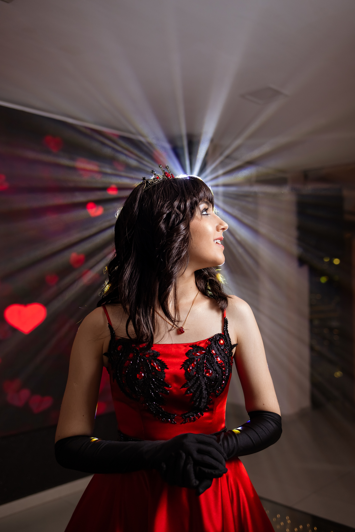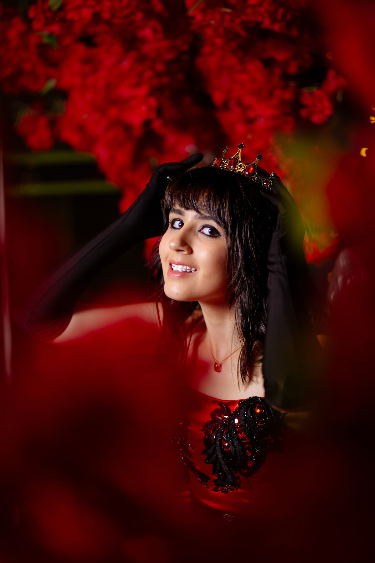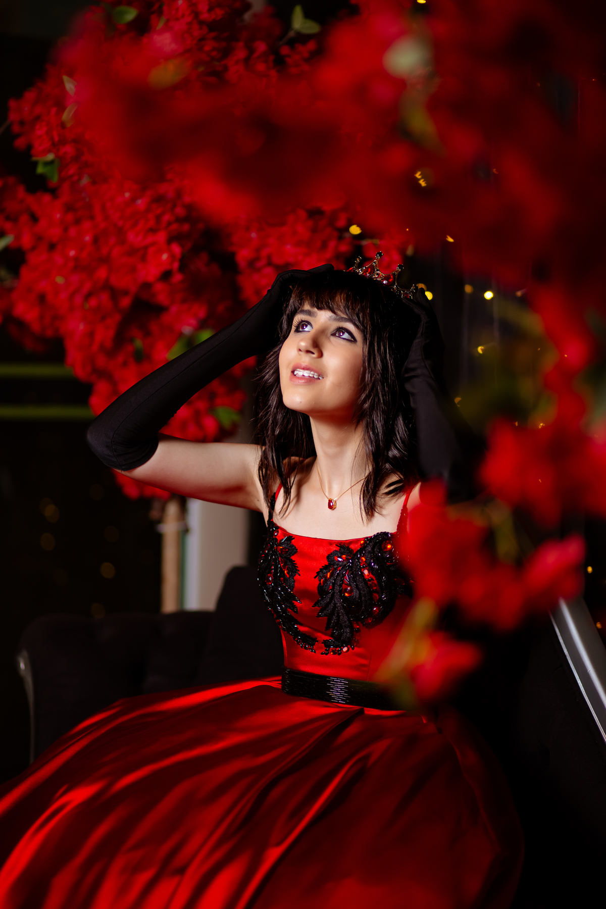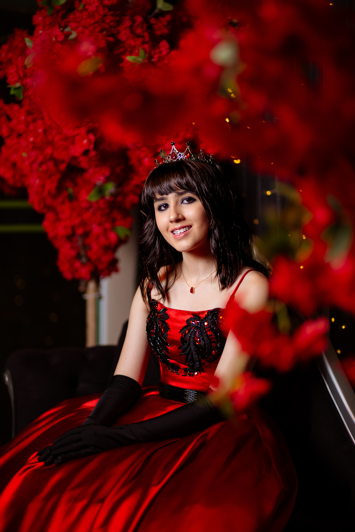 Ela chegou deslumbrante, com um vestido vermelho de princesa e um sorriso que iluminava todo o salão. A decoração estava impecável, cada detalhe pensado com carinho, e o ambiente exalava elegância e alegria.