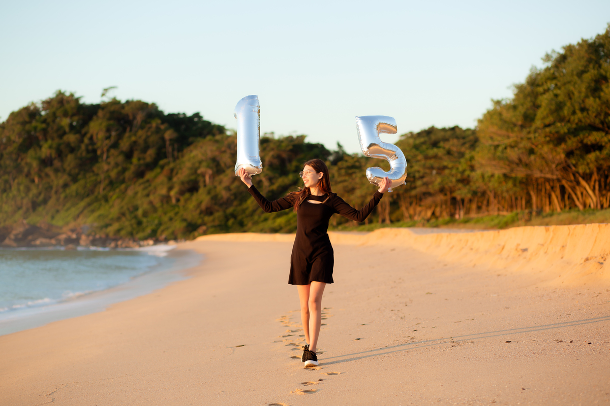 "Vitória: Um raio de sol em meio à beleza da natureza. Celebrando a feminilidade e a leveza em cada clique."