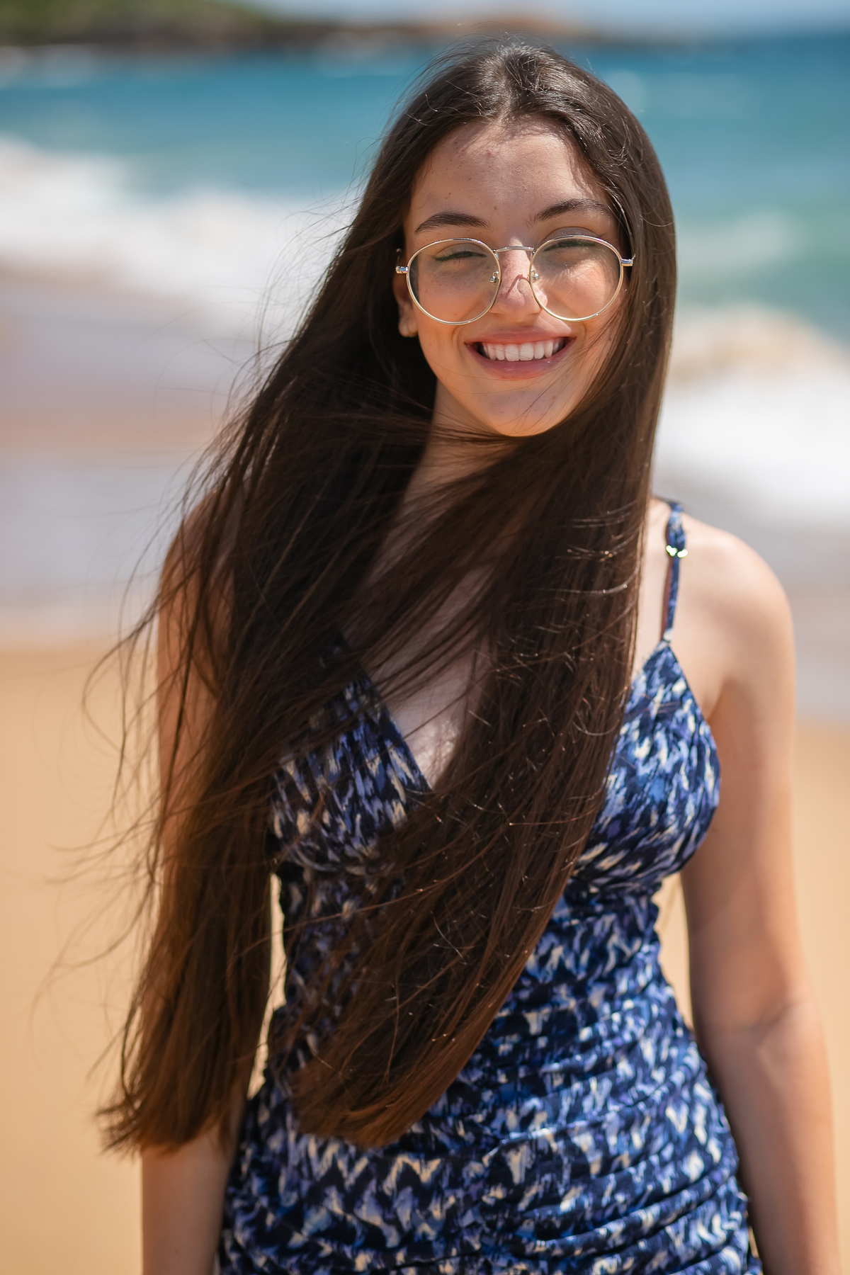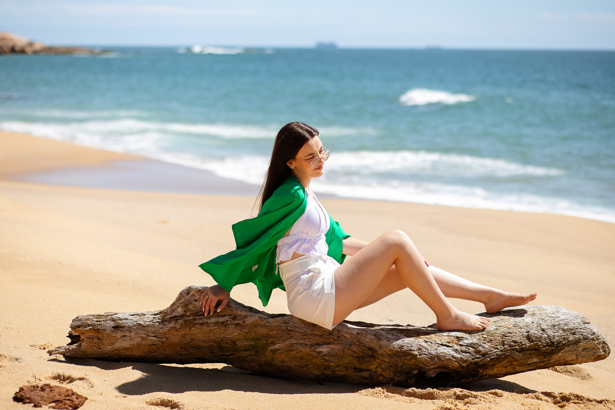 As paisagens que escolhermos, com suas cores vibrantes e texturas suaves, serviram de moldura perfeita para sua beleza. As ondas do mar sussurrando ao fundo e a brisa suave que dançava ao seu redor eram testemunhas da sua transformação em uma jovem cheia de sonhos, pronta para explorar o mundo.