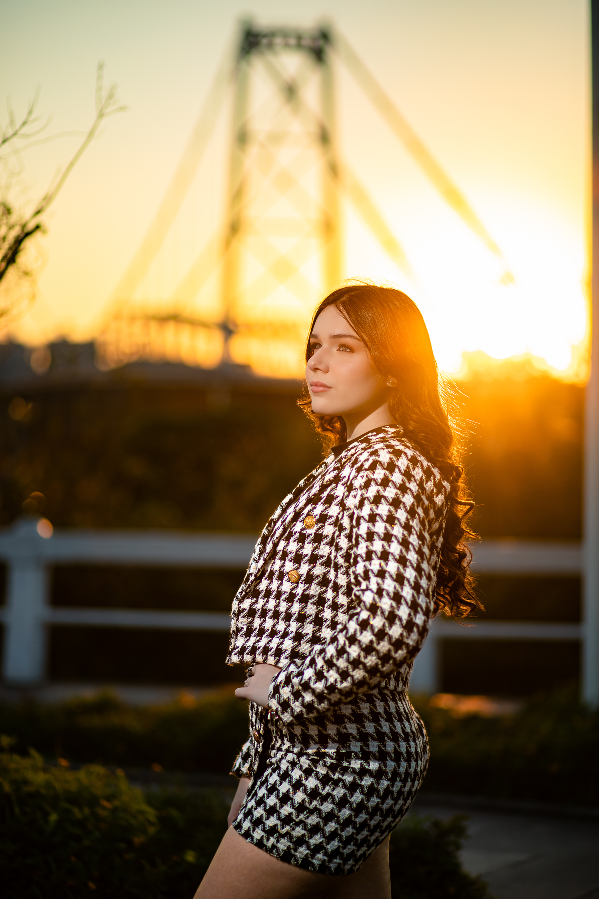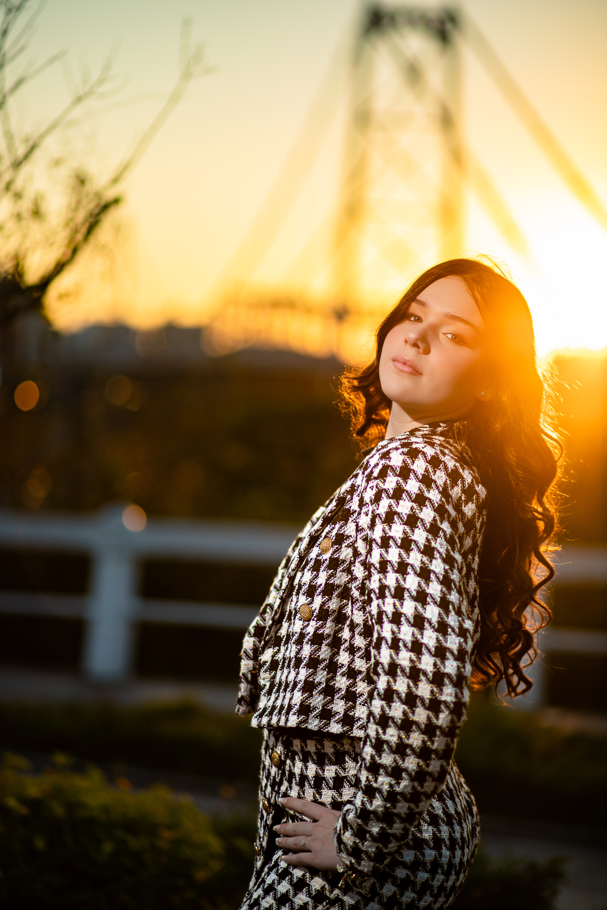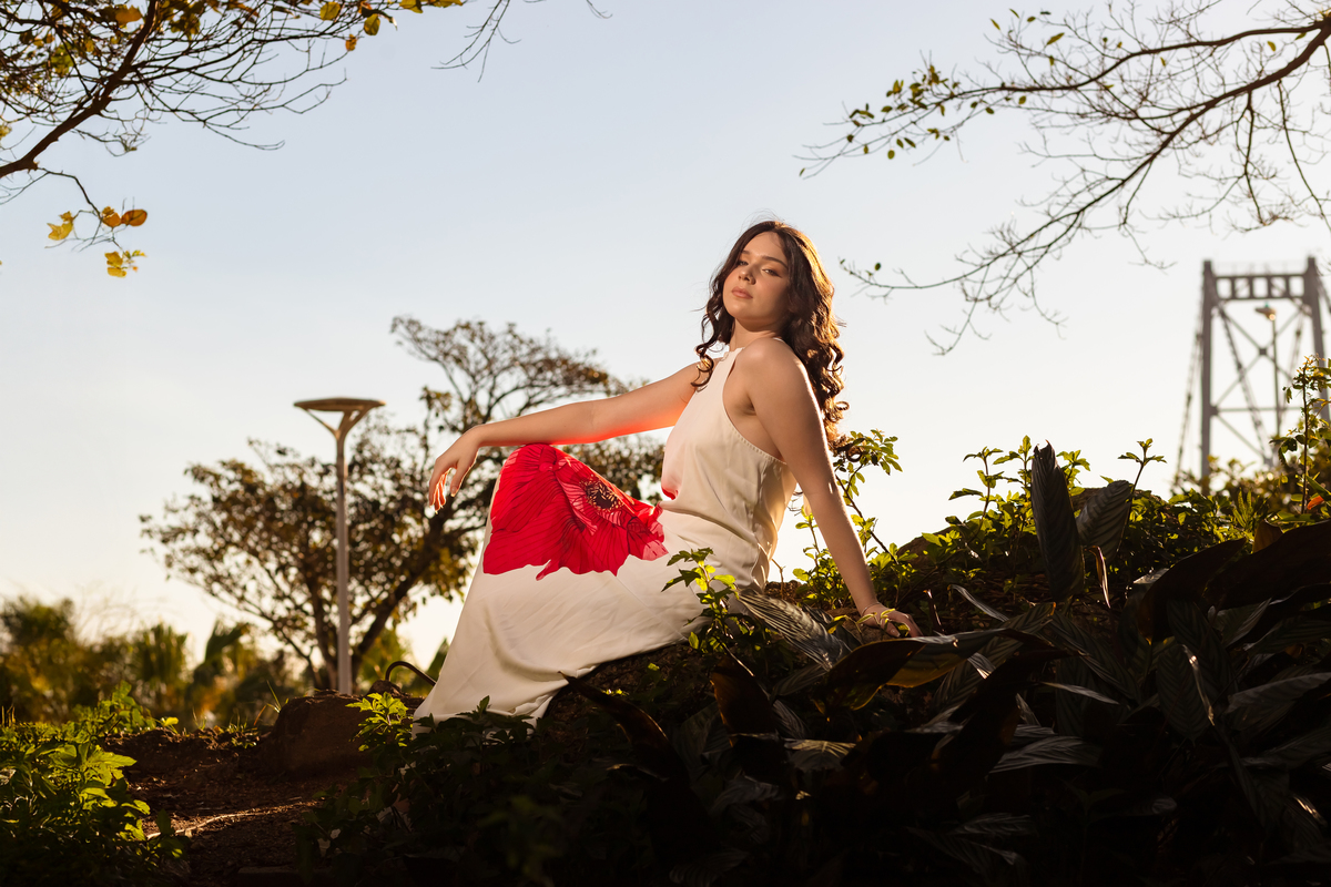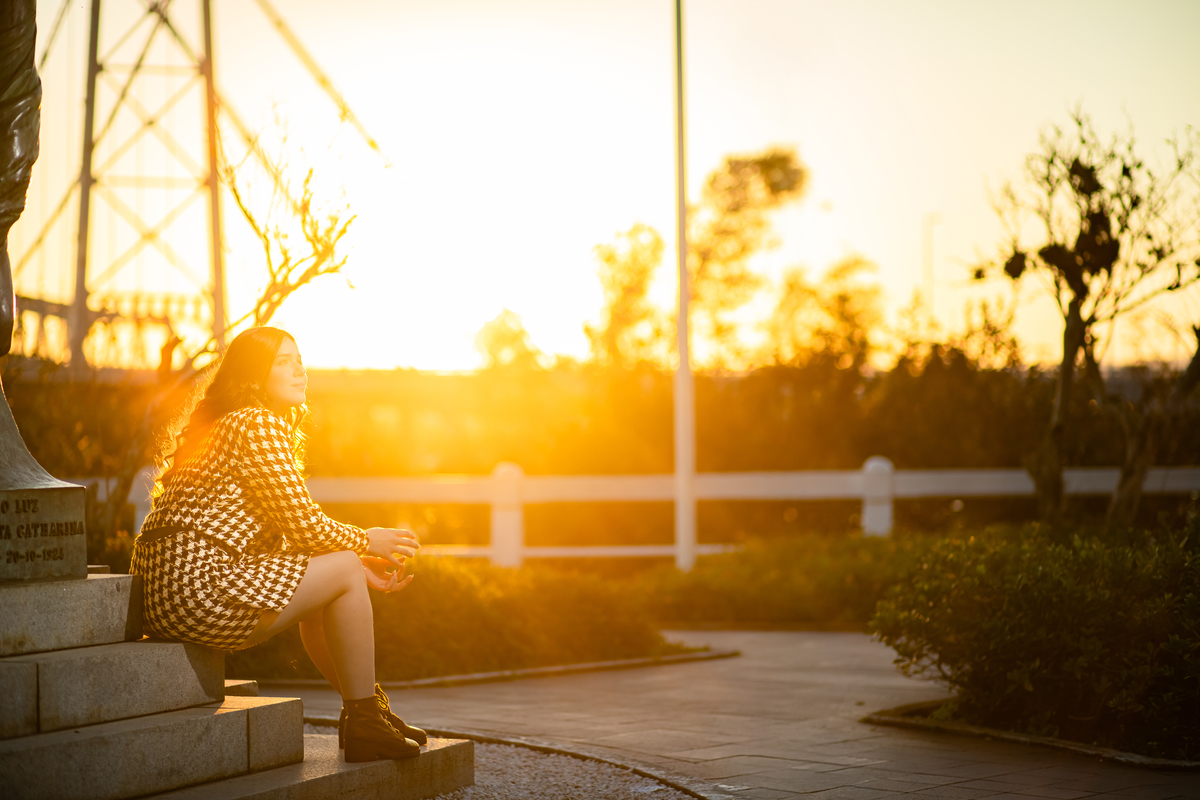 Entre luzes douradas e o pôr do sol na Ponte Hercílio Luz, vivemos um ensaio que foi pura poesia em cada clique. 🌉✨