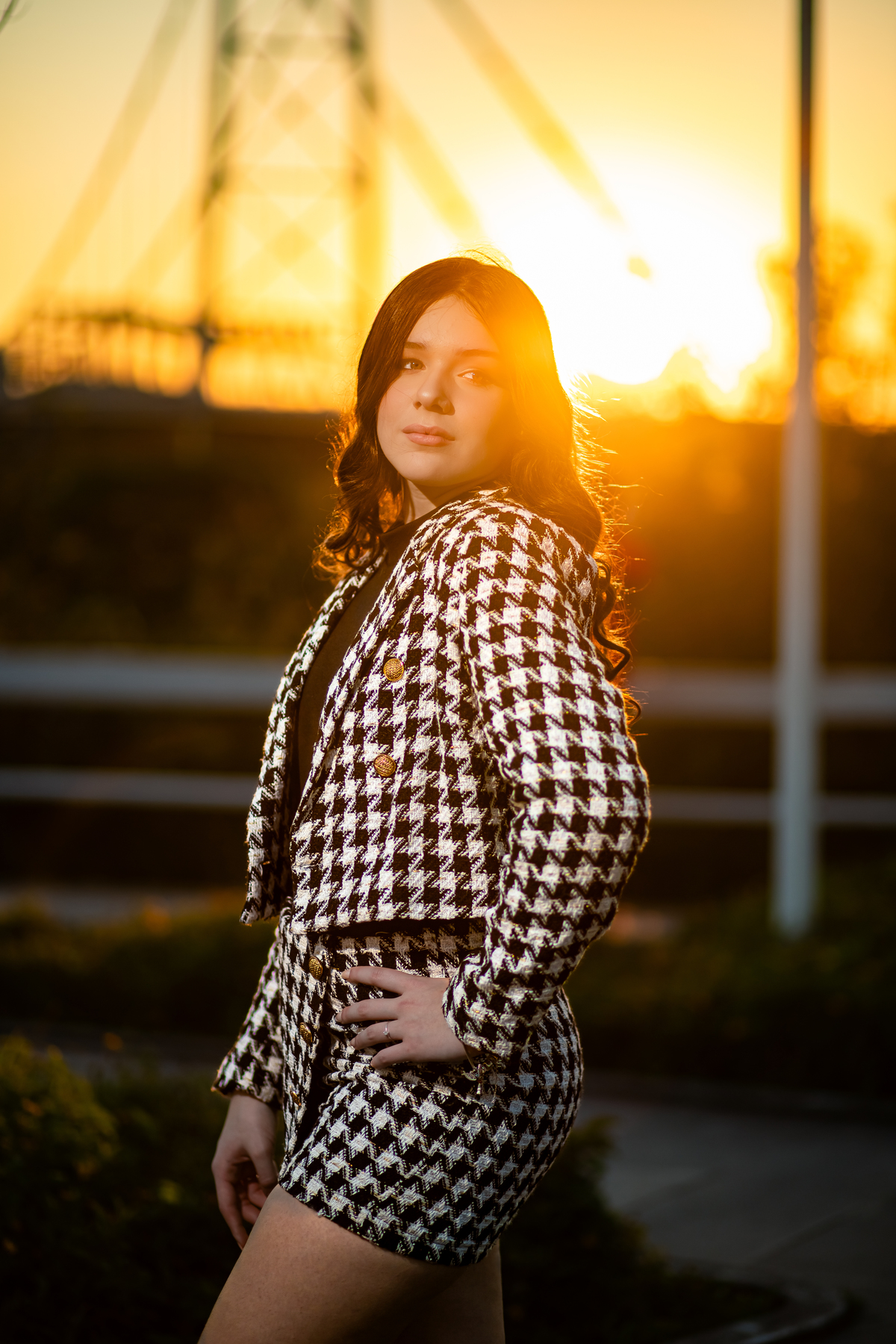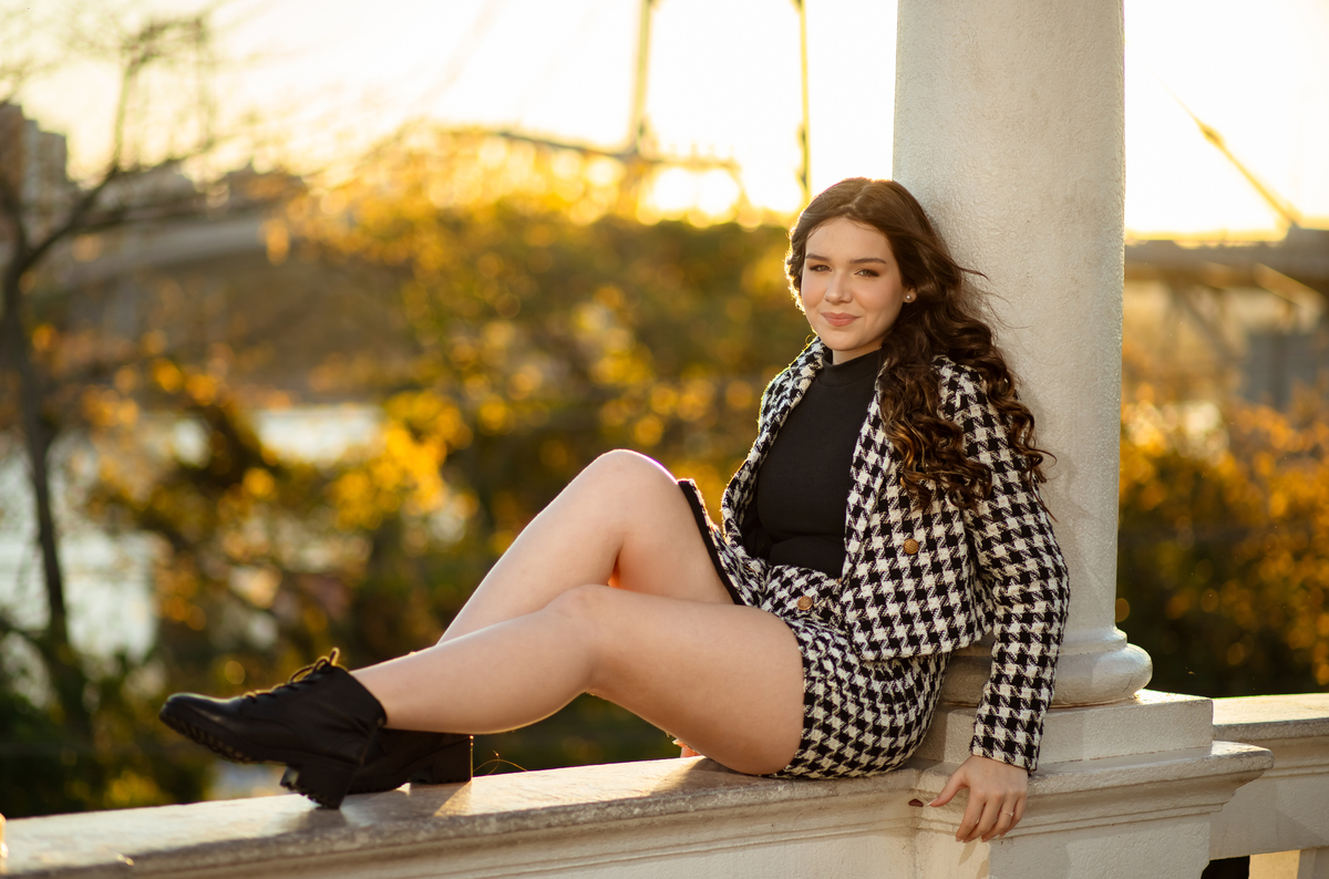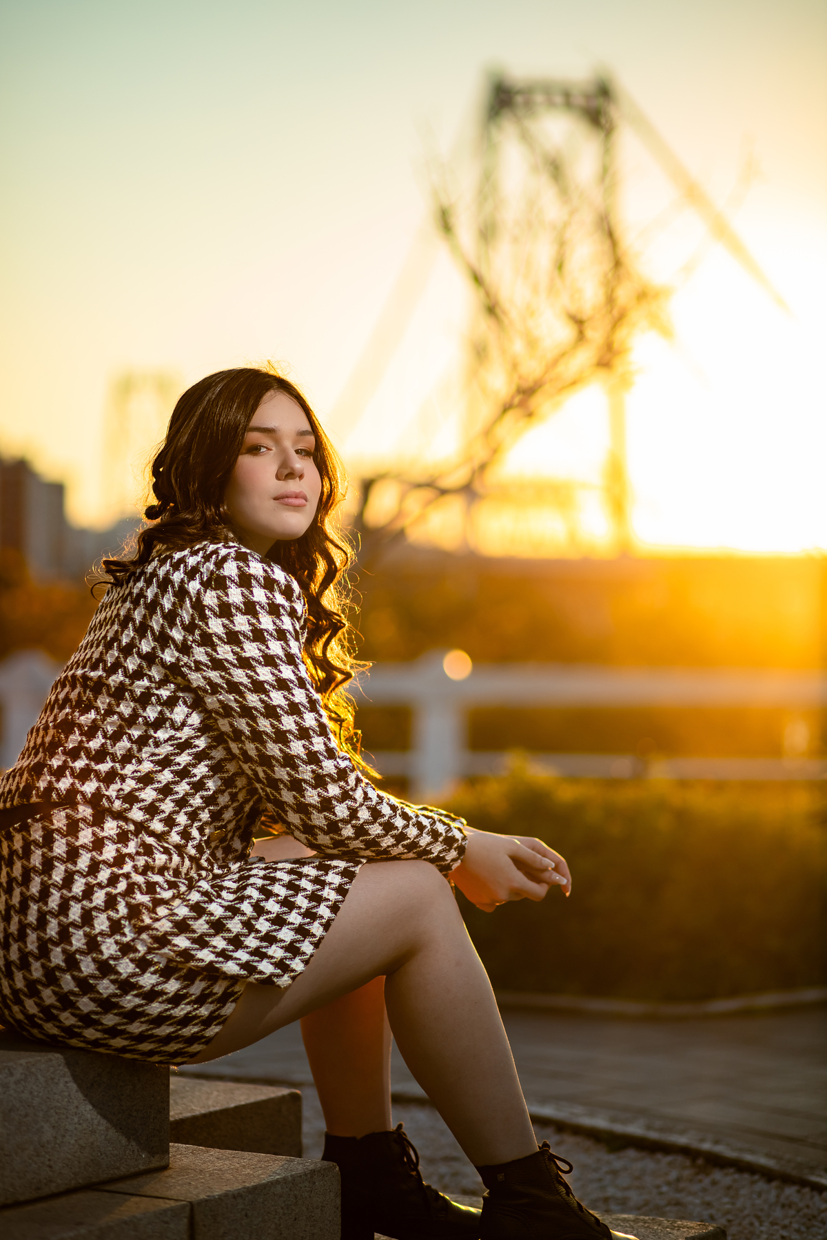 Entre luzes douradas e o pôr do sol na Ponte Hercílio Luz, vivemos um ensaio que foi pura poesia em cada clique. 🌉✨